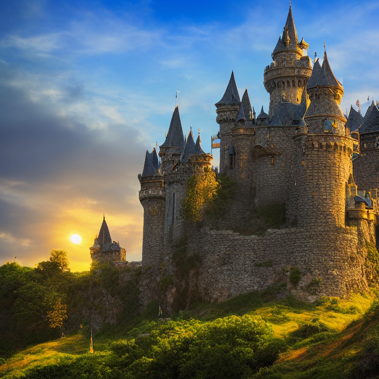 lamename extremely detailed fantasy castle on a hill with sunset